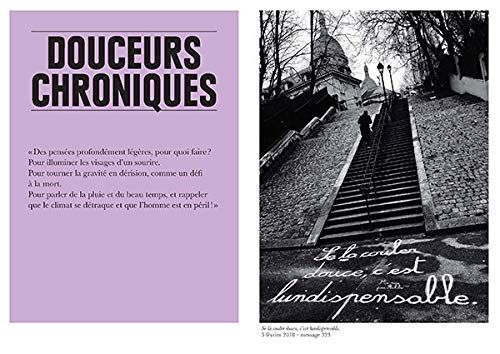 Ce livre est une suite logique mais n’était pas une fin en soi. C’est pourquoi sa forme et son format correspondent en tout point à la démarche de Claudie : dans un style sobre et épuré, on retrouve un florilège de phrases fortes et engagées, aphorismes et autres jeux de mots toujours emprunts de poésie, qui rythment le presque quotidien des milliers de fans qui la suivent sur les réseaux sociaux, et des montmartrois qui ont la chance de la croiser ou de la côtoyer.