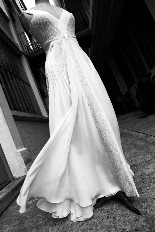 Elle aime travailler les belles matières, pour créer des modèles à la coupe parfaite, et sait s’adapter aux désirs et à la personnalité de toutes les femmes, quel que soit leur âge et leur morphologie. Toutes les robes sont confectionnées dans son joli atelier du bas Montmartre, et le résultat est tout simplement magnifique…