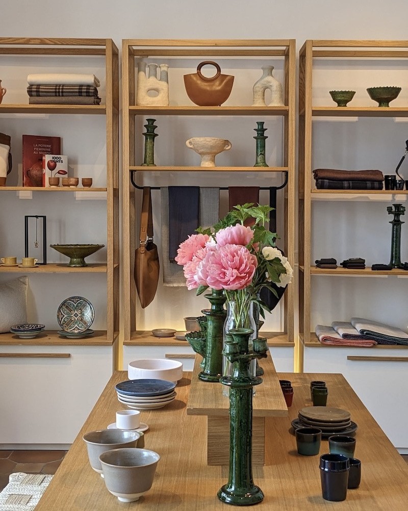 Amina avait en effet un projet, élaboré durant ses études à Sciences Po : fonder un studio de création et de confection artisanale mettant en avant les savoir-faire marocains, son pays d’origine. L’Atelier Mendil se spécialise alors dans l’art du tapis, du tissage, de la céramique et de la vannerie. Afin d’être au coeur de leur sujet, Louis et Amina s’installent à Casablanca où ils vivent durant six ans, avant de revenir fin 2021 pour ouvrir leur première boutique, à Montmartre forcément !