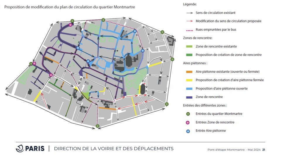 Il a été rappelé, lors de la réunion d’information du 29 mai 2024, que ce nouveau plan de circulation avait été établi dans le but d’apaiser la circulation sur la Butte. Dans ce sens, de nombreuses places de stationnement vont être supprimées, passant de 10 000 à 2 000 ; autant dire que celles et ceux qui ont encore une voiture et pas de parking ont tout intérêt à avoir de bonnes jambes et de bonnes baskets !