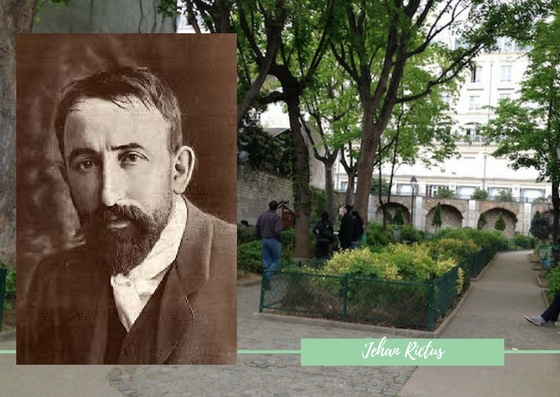 Originaire du Pas-de-Calais, Jehan Rictus (de son vrai nom Gabriel Randon), commence à fréquenter Montmartre au milieu des années 1880. Durant de nombreuses années, il vit dans la rue et fréquente les clochards et autres laissés pour compte qui trouvent refuge dans le Maquis. En 1895, il commence à écrire des poèmes dans un style très populaire, qu’il vient déclamer au cabaret des Quat’z’Arts boulevard de Clichy. Il fréquente aussi régulièrement le Lapin Agile, où il côtoie Max Jacob et Guillaume Apollinaire. Il s’installe alors au 64 rue Lepic où il vivra jusqu’en 1904, puis emménage au 50 où il restera jusqu’en 1913. En 1914, il déménage 8 rue Camille Tahan, où il vivra jusqu’à sa mort en 1933. Le Square des Abbesses porte aujourd’hui son nom.
