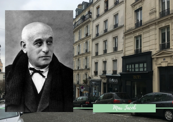 Il y aurait tellement à dire sur Max Jacob, peintre, poète, critique d’art et surtout figure marquante du Montmartre Bohème. Sa première adresse connue dans le quartier est le 33 boulevard Barbès, où il habite alors une mansarde partagée avec son frère Jacques. Il s’installe ensuite au 17 rue Gabrielle, puis au 7 rue Ravignan, où il vivra entre 1907 et 1911. C’est là que le 28 septembre 1909, il eut sa vision du Christ qui le poussa à se convertir au Christianisme. C’est Max Jacob qui donnera son nom au Bateau Lavoir, où vivait son ami Picasso. Il fut l’un des premiers poètes à écrire en prose. C’est à lui que l’on doit le poème « La rue Ravignan »