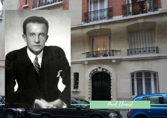 La famille de Paul Eluard s’installe au 3 rue Ordener alors qu’il a 17 ans. En 1917, il épouse Gala Diakonova à la Mairie du 18e, puis à la naissance de leur fille, ils vivent avec Max Ernst dans son atelier des Fusains au 22 rue Tourlaque. Il retournera ensuite rue Ordener, avant de trouver un appartement pour Gala au 7 rue Becquerel. C’est à la même période que celle-ci quittera Eluard pour vivre avec Salvador Dali dans ce même appartement. Paul Eluard quittera définitivement Montmartre et le 18e en 1949, après avoir vécu rue Max Dormoy avec sa seconde femme Nusch.