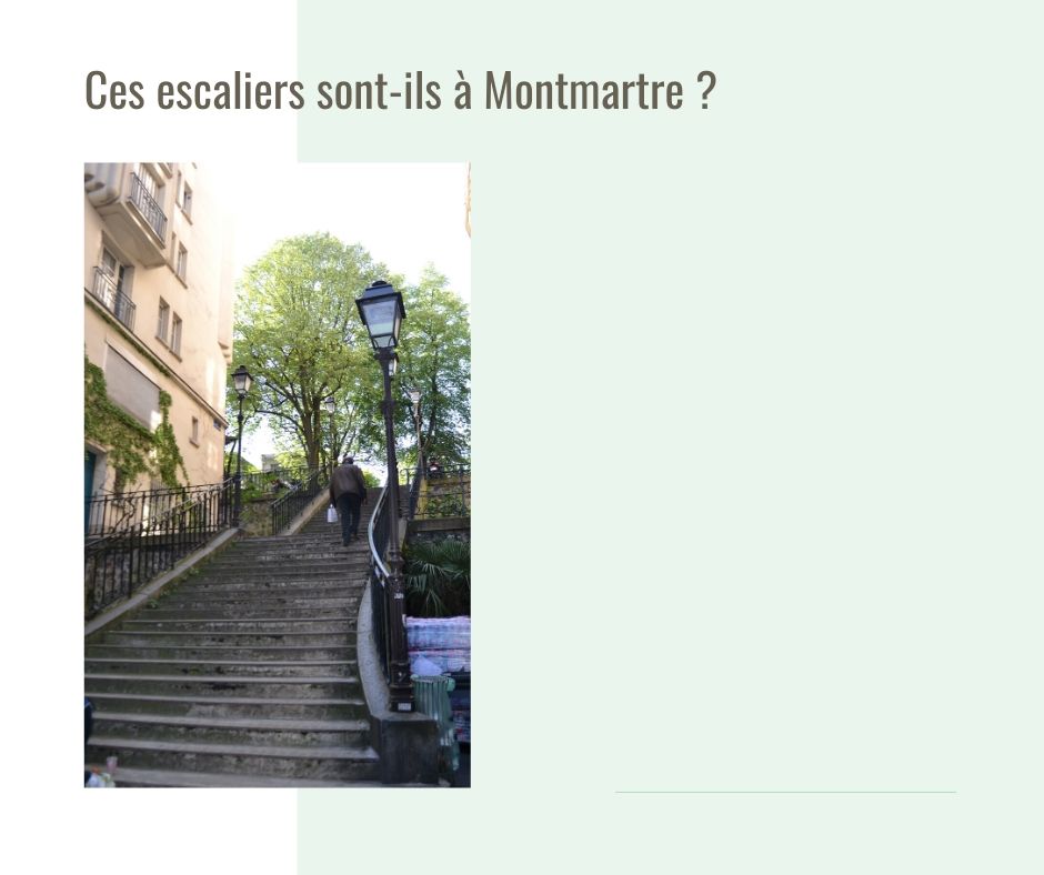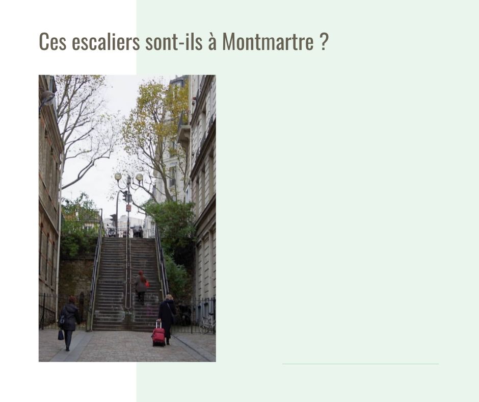 Que vous habitiez Montmartre ou pas, vous pensez bien connaître le quartier ? C’est le moment de tester vos connaissances. Vous pouvez vous munir d’un papier et d’un crayon !pour calculer votre score, et voir les résultats en cliquant sur le lien en fin de jeu. Alors, prêt.e.s à relever le défi ??? C’est parti !