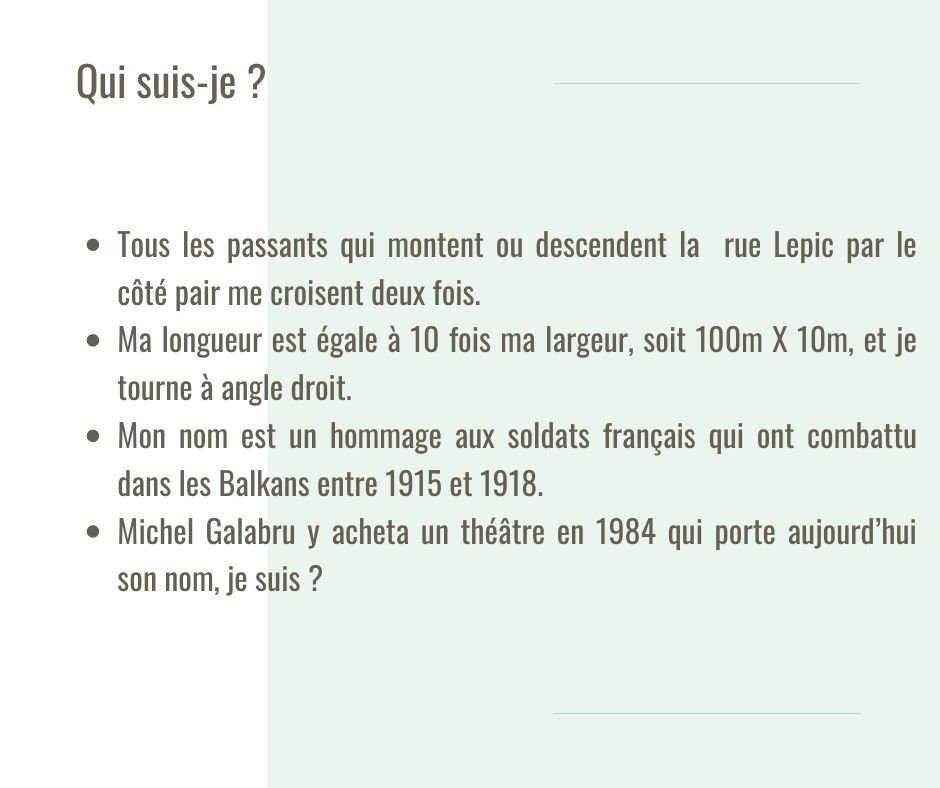 Que vous habitiez Montmartre ou pas, vous pensez bien connaître le quartier ? C’est le moment de tester vos connaissances. Vous pouvez vous munir d’un papier et d’un crayon !pour calculer votre score, et voir les résultats en cliquant sur le lien en fin de jeu. Alors, prêt.e.s à relever le défi ??? C’est parti !