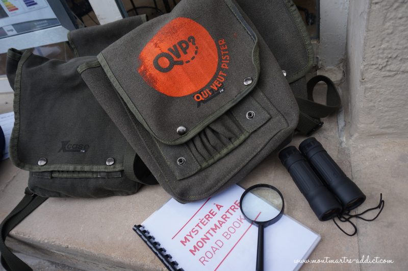 Rendez-vous Place Marcel Aymé où chaque équipe, dont l’équipe Montmartre Addict* s’est vue remettre un sac contenant un carnet de route et divers accessoires. La particularité de ce jeu de piste est que toutes les équipes mènent la même enquête, et doivent non seulement résoudre des énigmes, mais également être les plus rapides ! Autant dire qu’à Montmartre, la balade s’avère plutôt sportive.