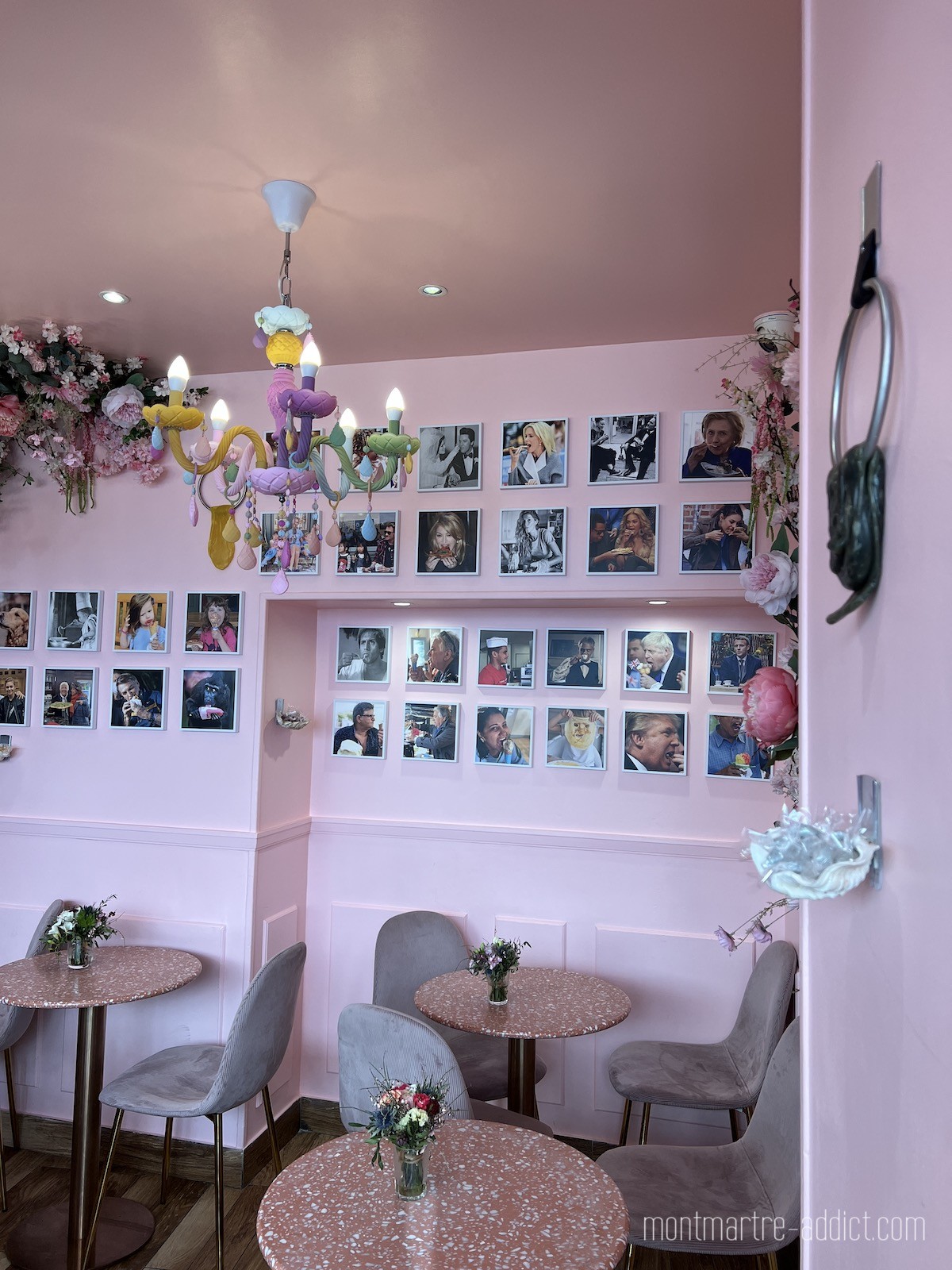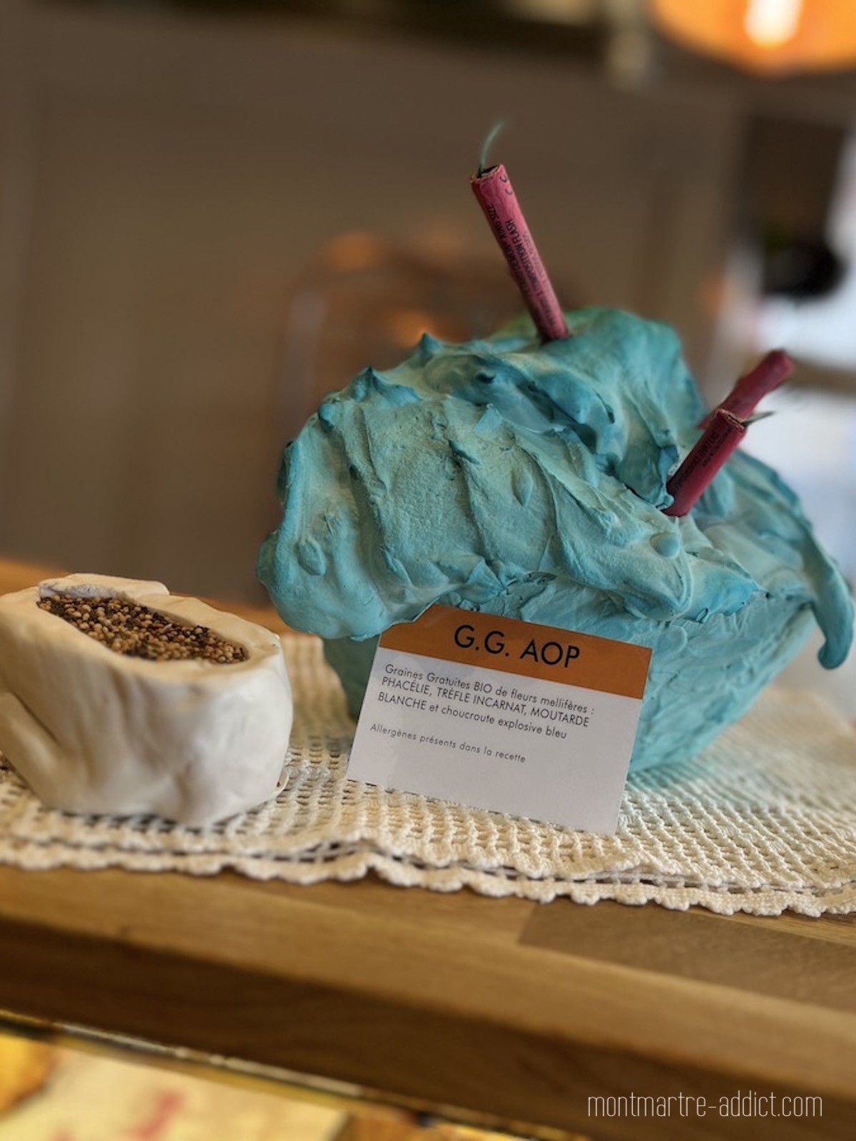 Chez le glacier Pepone, Juliette Delecour présente une installation interactive composée de bénitiers remplis de bonbons et de sculptures en sucre glace dont chaque couleur fait référence à un goût. A la poissonnerie, Kim Bradford s’est inspirée du vocabulaire marin qui se trouve dans diverses expressions françaises qu’elle a reproduit sur plusieurs supports, notamment la banderole en devanture, pour interroger sur l’urgence climatique. Un peu plus bas à la Fromagerie Lepic, Elise Grenois a travaillé la porcelaine pour créer des trompe-l’œil à (re)trouver sur les étagères. A la Pizzeria Pepone, Valentin Abad présente une installation motorisée qui, à chaque fois qu’elle est activée, se voit altérée. En face, chez Urban Bakery, Martha Maria Le Bars propose une installation composée de plusieurs pièces en grès et dentelle, qui vient se répandre et grandir comme sous l’effet de la fermentation du levain. Chez La Bossue, Anne-Lise Voisin s’est inspirée des récits de Georges, 90 ans, qui habite juste au-dessus, pour créer une œuvre pleine de poésie mêlant audio, photographie sucre et colle chaude… Chez Bibiche, l’œuvre réalisée par Amélie Bernard est un concentré du lieu, mêlant matières minérales ou organiques. Enfin rue Tholozé, Deborah Fischer a investi tout l’Hôtel Littéraire Marcel Aymé pour exposer ses œuvres inspirées par les objets du quotidien, le thème du voyage et les écrits de Marcel Aymé.