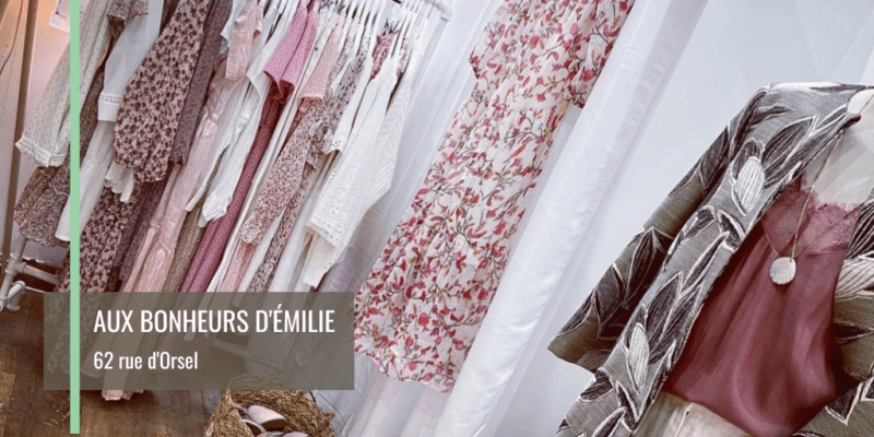 Après avoir eu une boutique dans l’Oise, Emilie s’est installée en février dernier rue d’Orsel avec ses petits bonheurs : une jolie sélection de prêt-à-porter féminin et de marques sympa et accessibles (La Petite Etoile, Grace et Mila…), de bijoux, de senteurs et peut-être bientôt un peu de déco. Comme elle fonctionne au coup de cœur, elle accueille aussi quelques créateurs montmartrois. Il y a beaucoup de choix, et pour tous les gouts.