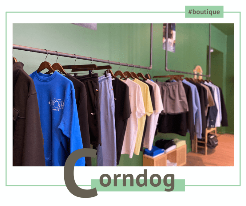C’est pour que les hommes ne soient pas obligés d’aller chez Citadium à chaque fois qu’ils ont besoin d’un tee-shirt blanc que Marine a eu envie d’ouvrir une boutique de prêt-à-porter masculin. C’est vrai que vers le bas du village Ramey, il n’y avait pas grand chose pour ces messieurs, et qu’ils ont maintenant la chance d’avoir un lieu canon et spacieux rien que pour eux. Sur les portants, on trouve principalement des marques écoresponsables à la fois street et basiques, qui reflètent bien la philosophie de Corndog : fun, simple et accessible.