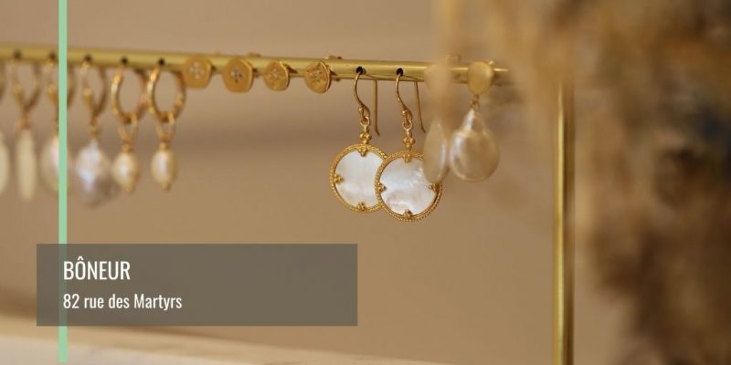 Bien plus qu’une boutique, c’est un véritable écrin que Maud a offert à ses créations en ouvrant sa boutique rue des Martyrs. Née de parents bijoutiers, la jeune femme a créé la marque Bôneur il y a deux ans à Montmartre, jusqu’à présent vendue exclusivement sur internet. Ses bijoux, fabriqués dans des ateliers artisanaux en France, sont tous plaqués or 18 carats et composés de pierres naturelles, avec une prédilection pour la nacre et la perle. Maud puise son inspiration dans le ciel, la nature et les astres, pour un rendu baroque mais terriblement moderne ; on adore !