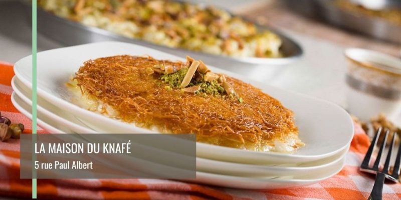 C’est à deux pas du Sacré-Cœur que Moulhan a décidé d’ouvrir sa maison du knafé. Ancien étudiant dans une grande école de commerce, le jeune homme d’origine syrienne ambitionne de créer une véritable marque autour du knafé, spécialité orientale à base de cheveux d’ange, de semoule, de fromage et d’eau de rose. La petite échoppe montmartroise fait donc figure de laboratoire, ce qui explique peut-être pourquoi les avis sont partagés. Le knafé est divin pour certains, trop sec pour d’autres (mais sachez-le, il faut le manger tiède, ceci expliquant peut-être cela), l’offre salée est pour l’instant très limitée, mais il est prévu de proposer prochainement un plat du jour. A suivre donc…