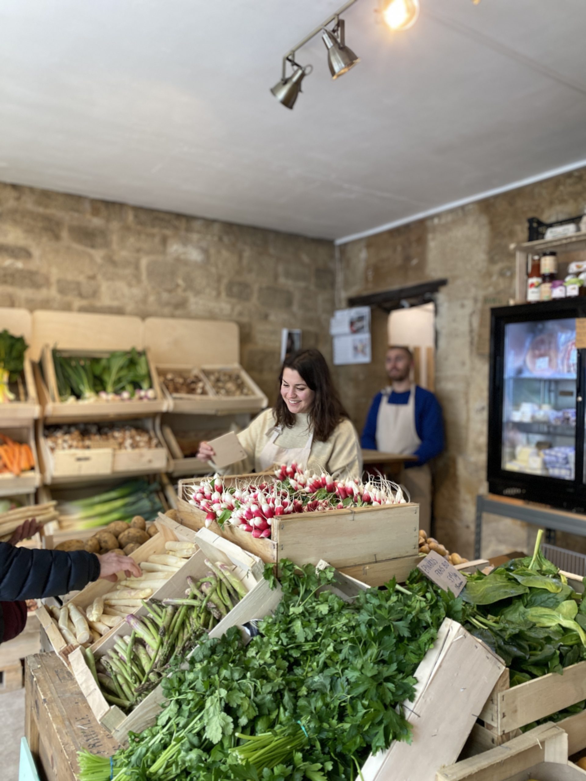 Un an après avoir ouvert, la petite entreprise se porte à merveille et a conquis bon nombre d’habitants ! Les clients les plus réguliers ne dépassent pas les 500 mètres et tout le monde y trouve son compte. Les familles qui font le plein chaque semaine, les enfants qui s’extasient devant les blettes multicolores, les retraités qui viennent chaque matin faire leurs emplettes ou les étudiants qui profitent des dernières minutes avant la fermeture pour préparer l’apéro. Nombreux aussi sont les anciens élèves des cours de céramique qui viennent aujourd’hui faire leurs courses au même endroit. Mais la plus jolie des anecdotes reste le jour où une vieille dame de 70 ans poussa la porte avec émotion en apprenant à l’équipe que ses grands-parents tenaient dans les années 50 ici-même… un primeur ! Comme quoi il n’y a pas de hasard ! Un lieu chargé de vie, mêlant passé, présent et nostalgie. C’est peut-être pour ça que les étals se portent si bien, que les carottes sont aussi vives, les citrons ensoleillés et le persil resplendissant.