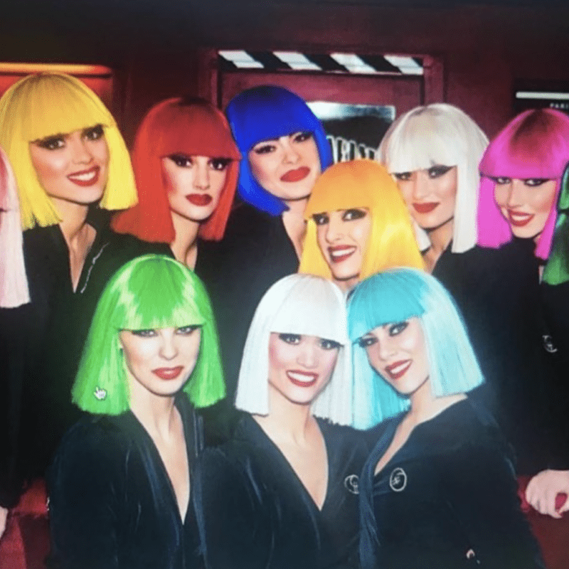 Mais revenons-en aux perruques, car si Raphaël est d’abord coiffeur, il est surtout l’un des artisans perruquiers les plus connus et reconnus du métier. « La perruque s’est démocratisée dans les années 70 grâce aux matière synthétiques. A l’époque, c’était un véritable accessoire de mode. Aujourd’hui, je travaille surtout pour le monde du spectacle, mais également pour des besoins liés à des problèmes de santé : cancers, alopécie, calvitie… ». Raphaël nous a même raconté qu’il avait réalisé des barbes et des moustaches pour la BRI ! Mais s’il a toujours fait des perruques, on peut dire que sa carrière a décollé le jour où il est devenu le perruquier officiel du Crazy Horse : « Quand j’ai appris que Poulain, qui travaillait depuis toujours avec le cabaret, cessait son activité, j’ai contacté le Crazy et j’ai relevé le défi ». Et tout comme Saint-Laurent quelques années plus tôt, Sophie Bernardin est devenue dingue des perruques de Raphaël. C’est d’ailleurs à lui qu’on doit les fameuses coiffures de couleur qui n’existaient pas à l’époque, et aujourd’hui connues dans le monde entier.