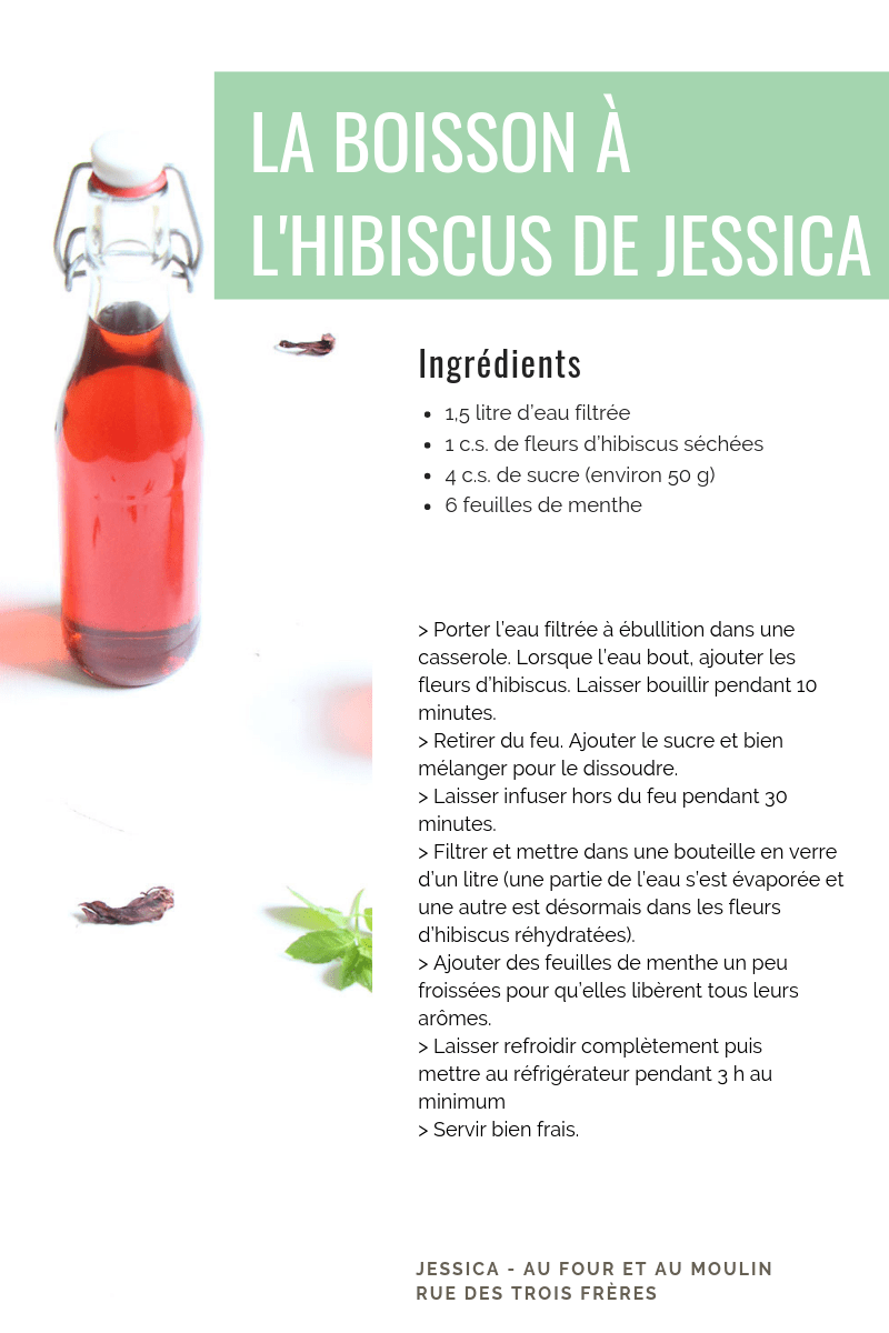 - la boisson rafraîchissante à l’hibiscus et à la menthe de Jessica des Ateliers Au Four & Au Moulin