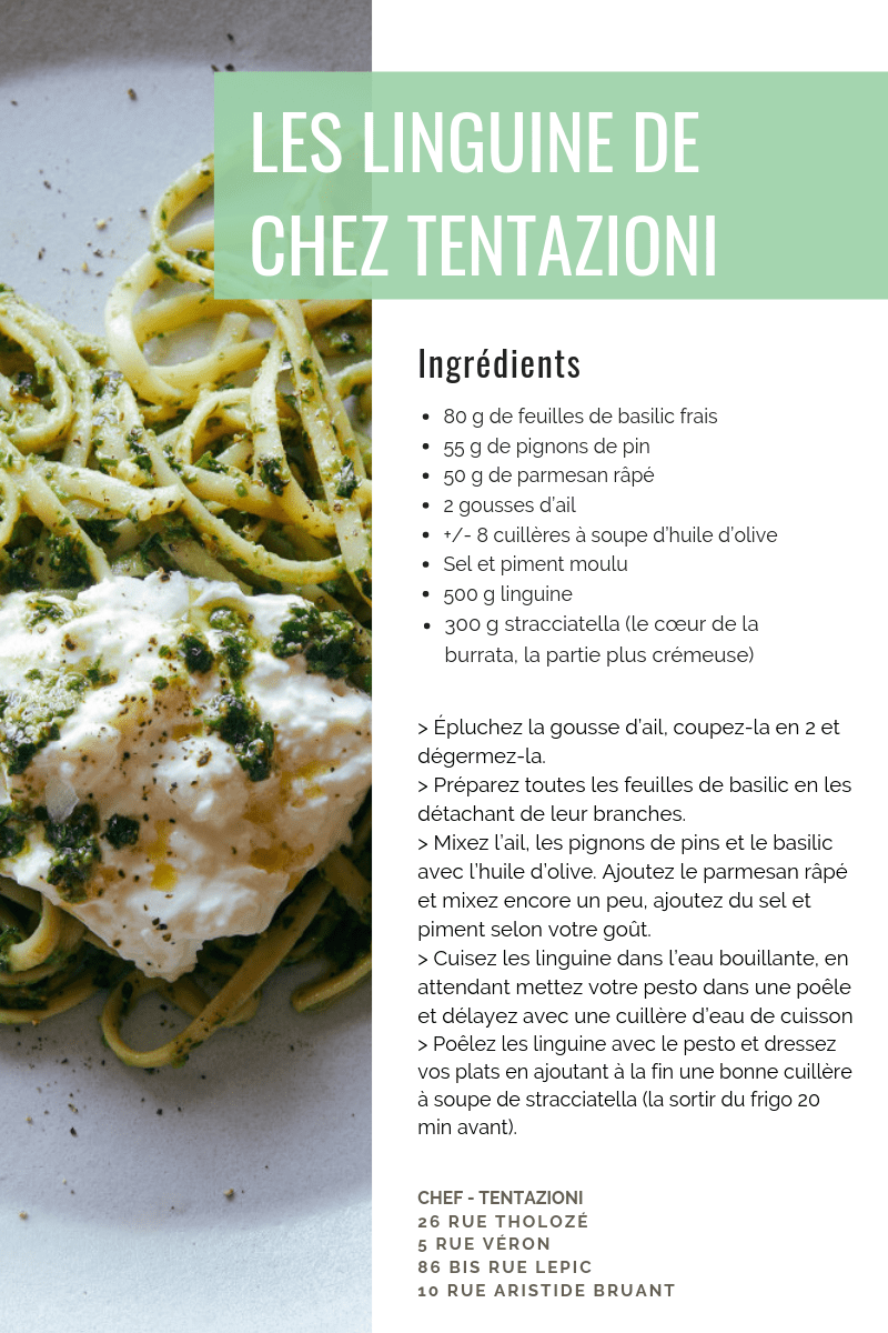 - les linguine au basilic, pesto et burrata crémeuse de chez Tentazioni