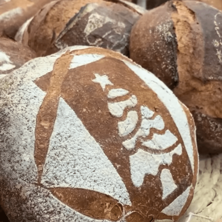 Parce que c’est souvent ce qu’on ne met pas sur la liste et qu’on oublie d’acheter. Chez Bistrot Baguette, des mains expertes préparent avec soin un pain spécial, dont la forme et le parfum reflètent l’esprit de Noël.