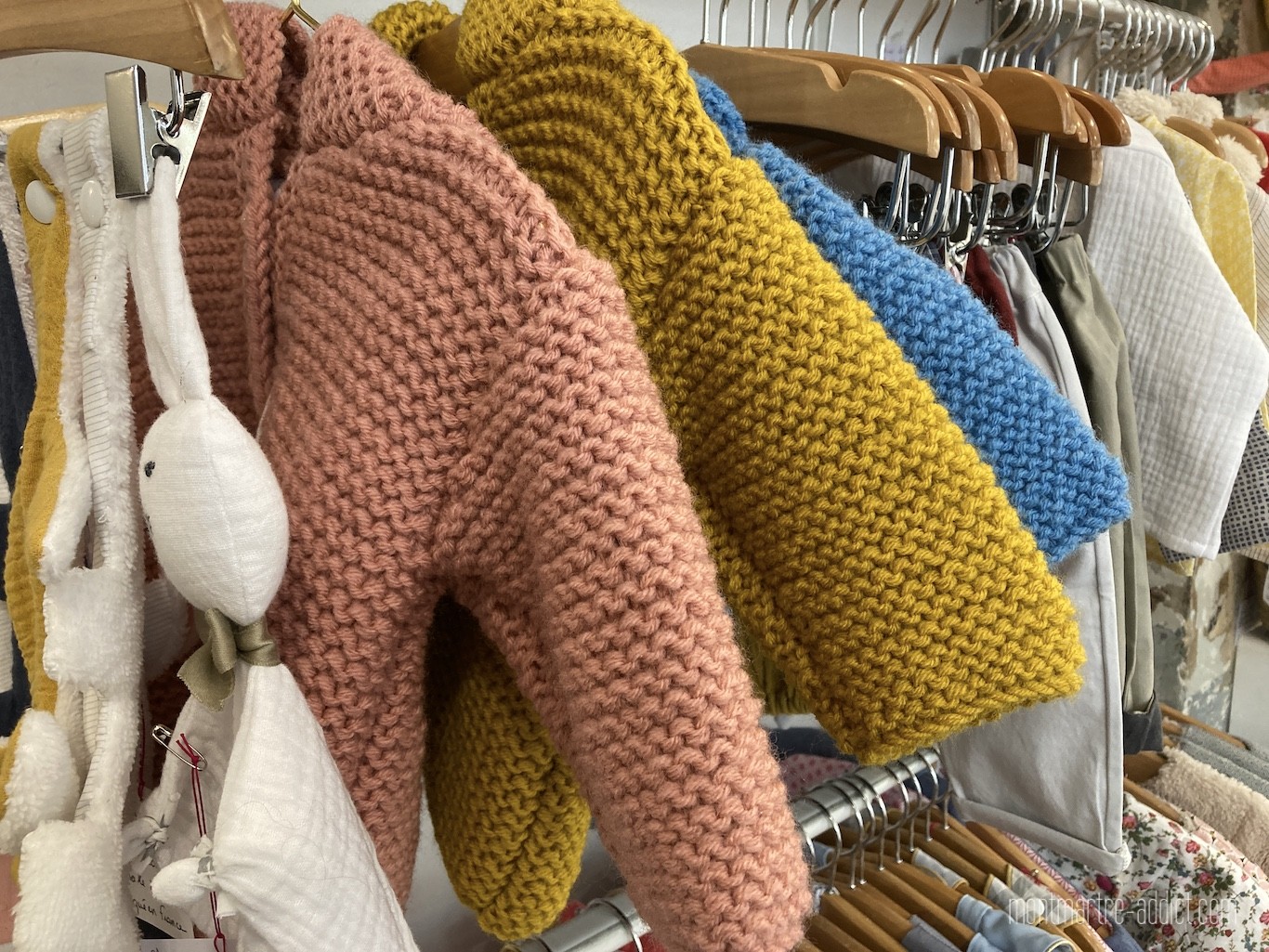 Chez Rose Durantin, on n’oublie pas non plus les tout-petits grâce aux vêtements Milaju imaginés et fabriqués par Sophie ; des créations réversibles dans des tissus trop mignons, en plus des accessoires, doudous, pochettes, lingettes et même des balles Montessori. La maille Rouge Amélie tricotée à la main et créée par Jennifer vient compléter tout en douceur l’offre bébé ; de quoi mettre des papillons dans le ventre de certaines !