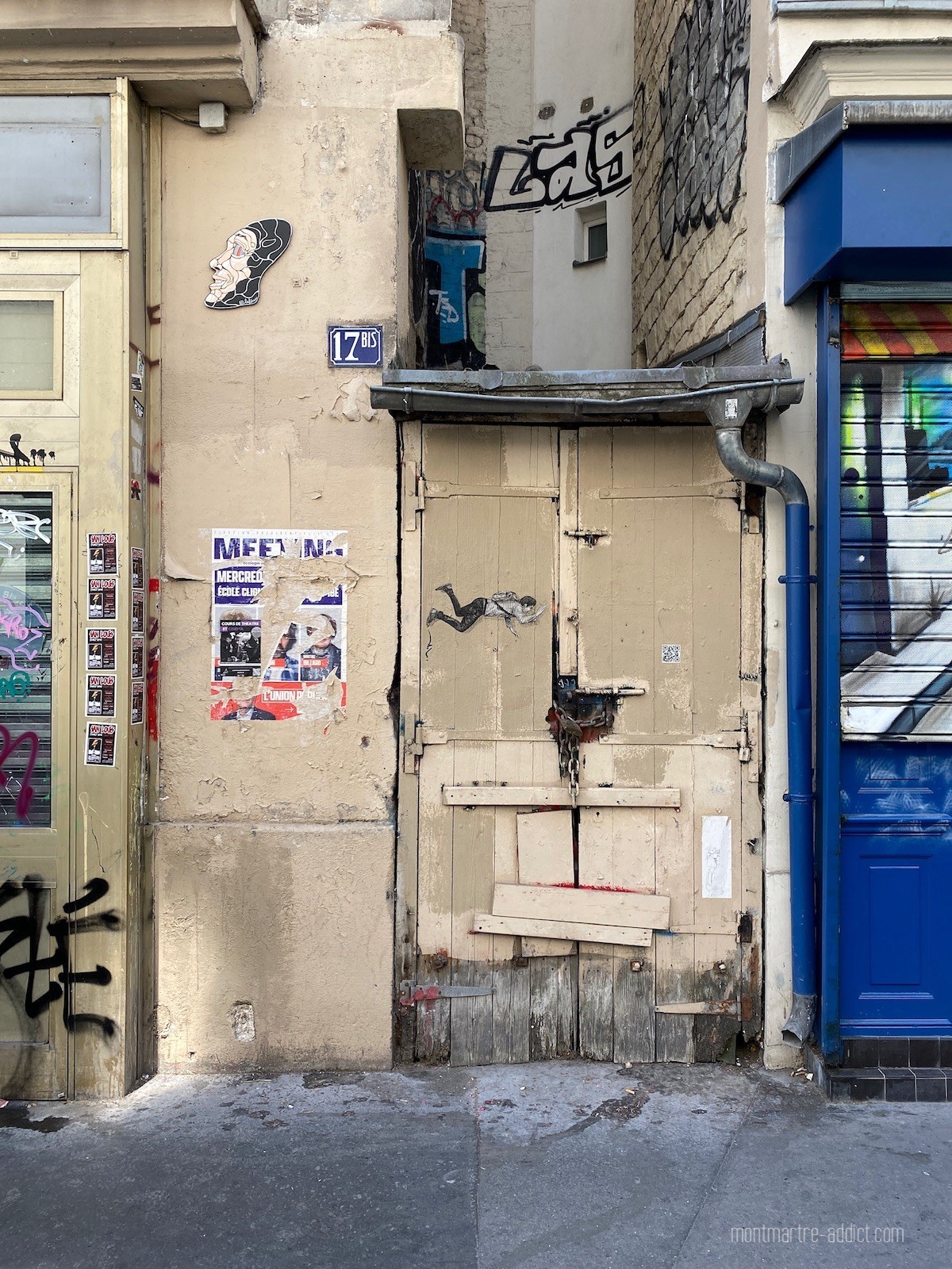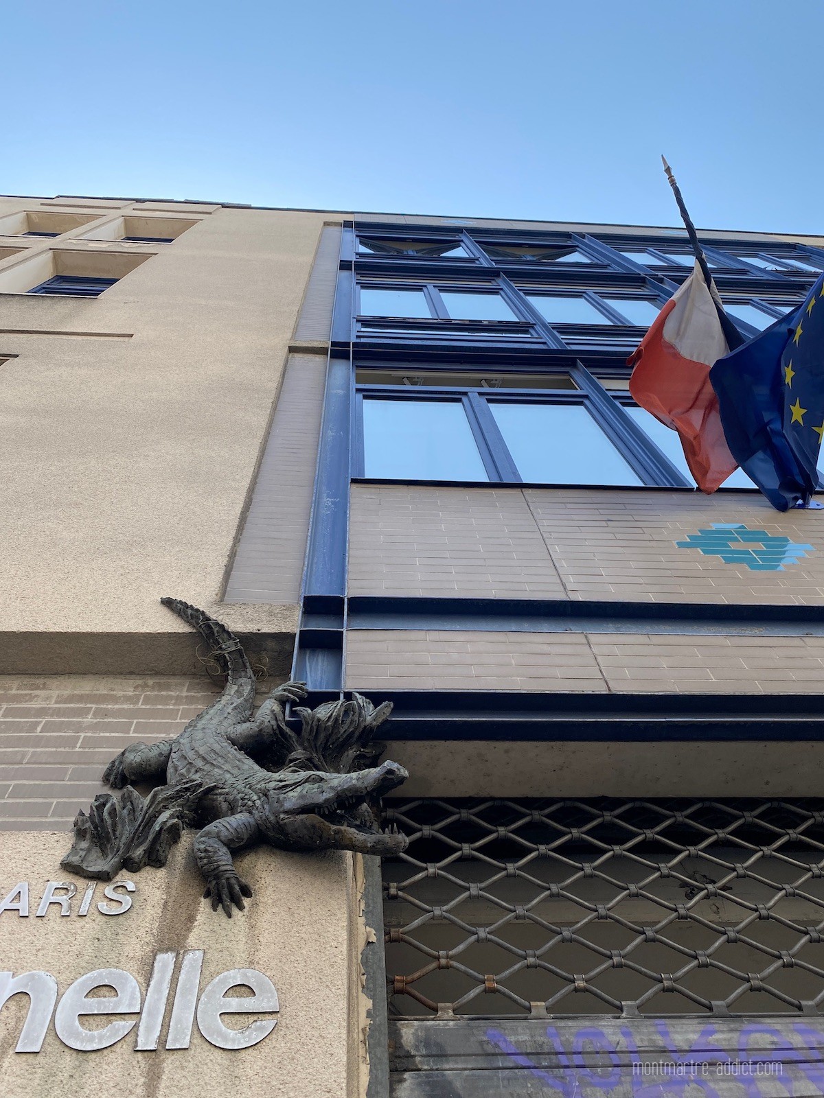 Côté curiosité, il est intéressant de s’attarder au numéro 17 bis. On ne voit pas grand-chose, mais derrière la petite porte cadenassée se cache l’un des derniers puits de Montmartre qui aurait servi aux insurgés pendant la Commune. Sur la façade de l’école maternelle un peu plus loin, on remarque l’étrange présence d’un crocodile et d’un aigle peu rassurants ; il s’agit sans doute d’un hommage à Cuvier, précurseur de la paléontologie, qui élabora l’une de ses théories sur l’évolution grâce aux fossiles retrouvés dans les carrières de gypse au bout de la rue. A noter également que l’école fut fréquentée par Fabrice Luchini, qui raconte qu’à l’époque, « il y avait deux portes, une normale pour les adultes et une toute petite pour les enfants. Nous, nous entrions par ce trou de souris. C’était formidable d’avoir pensé à ça ! ».