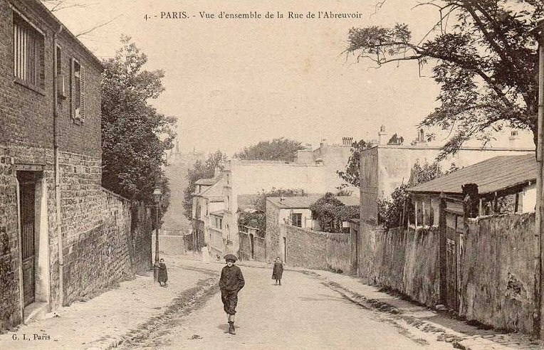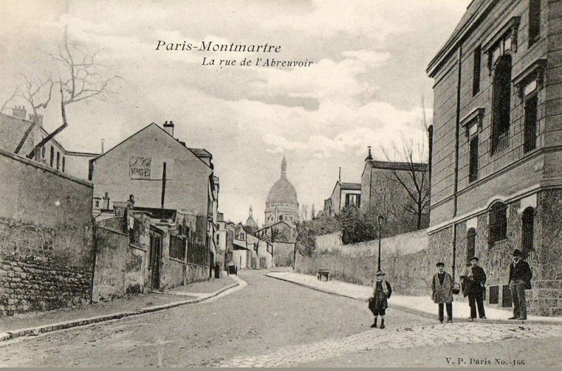 Parmi les rues les plus photographiées de Montmartre, la rue de l’Abreuvoir arrive sans aucun doute sur le podium, et ce pour de multiples raisons, à commencer par la célèbre Maison Rose située au numéro 2, et par sa perspective sur le Sacré Cœur depuis l’Allée des Brouillards et la Place Dalida.