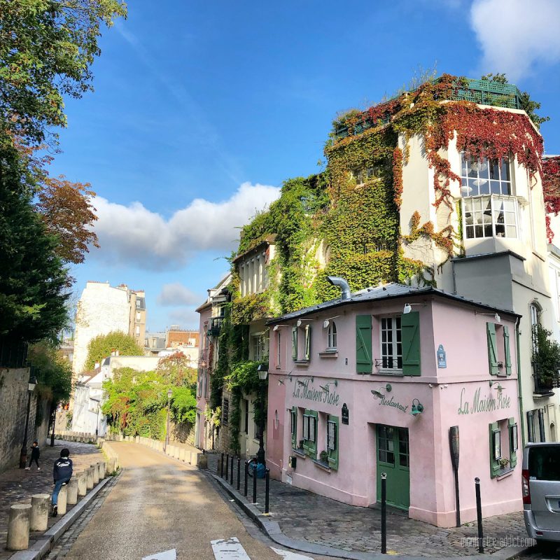 Nous voici désormais arrivés au bout, ou plutôt au début de la rue, et donc à la Maison Rose, qui après avoir été immortalisée, entre autre par Maurice Utrillo et Bernard Buffet, reste la maison la plus instagrammée de Montmartre et certainement de Paris, et dont nous avons déjà longuement parlé sur Montmartre Addict.