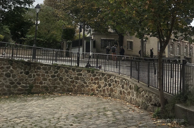 On apprend également que la rue a failli disparaître en 1867 suite à un décret prévoyant de l’élargir pour en faire une artère bordée de grands immeubles, et qui aurait dû porter le nom de Chasseloup-Laubat. Fort heureusement, il n’en fut rien, bien que la fontaine et l’abreuvoir n’existent plus aujourd’hui. A la place (ou plutôt juste à côté) s’élève la Villa Radet (ou Villa du Radet), superbe demeure du début du XXe siècle, qui porte le nom du moulin du même nom transporté à l’angle des rues Lepic et Girardon et rebaptisé (à tort) Moulin de la Galette. A noter qu’il s’agit du seul numéro impair (le 15) de la rue, celle-ci étant dominée tout du long par les jardins de la Cité Internationale des Arts et de la Folie Sandrin.