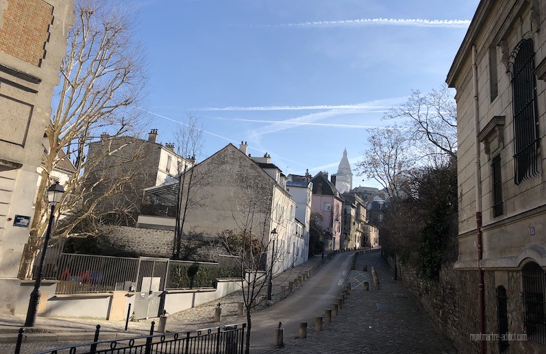 Parmi les rues les plus photographiées de Montmartre, la rue de l’Abreuvoir arrive sans aucun doute sur le podium, et ce pour de multiples raisons, à commencer par la célèbre Maison Rose située au numéro 2, et par sa perspective sur le Sacré Cœur depuis l’Allée des Brouillards et la Place Dalida.