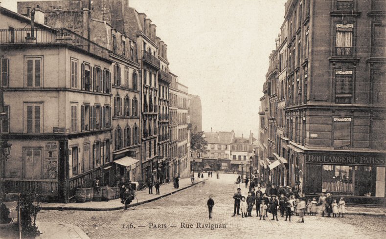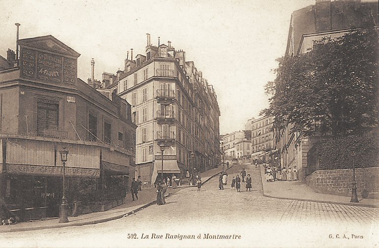C’est l’une des rues que l’on connaît tous à Montmartre sans forcément se souvenir de son nom. D’abord parce qu’elle fait partie des plus pentues de Paris (avec 13,6% de dénivelé), ensuite parce que c’est l’une des rares à être à double voie (toutes les rues de la Butte ou presque sont à sens unique), enfin parce qu’elle est traversée par la Place Emile Goudeau où se situait le Bateau Lavoir et qu’elle offre une vue exceptionnelle sur tout Paris. Mais la rue Ravignan regorge également d’histoires et d’anecdotes qu’il est grand temps de découvrir.