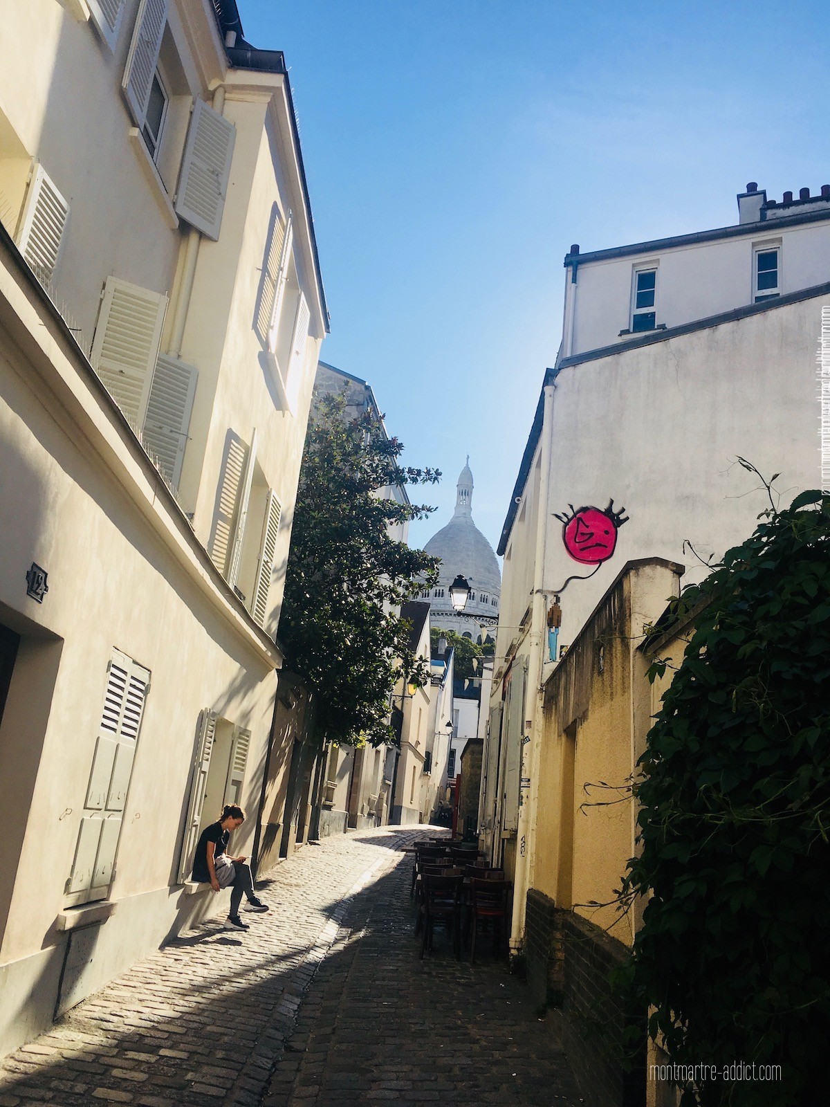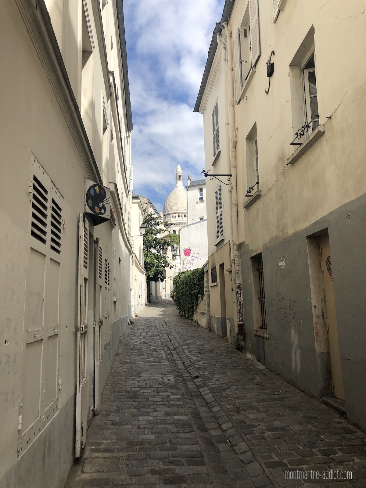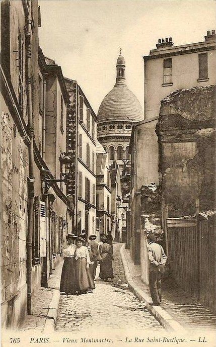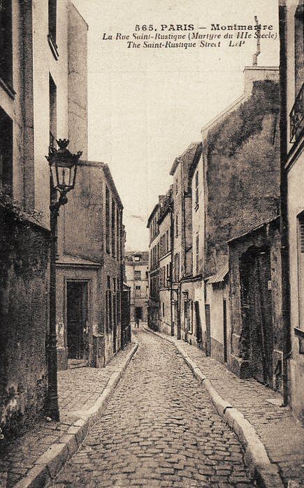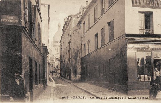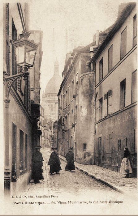 Depuis la rue des Saules, la rue Saint-Rustique offre une perspective superbe sur le Sacré-Cœur. Elle est surtout empruntée par les montmartrois qui évitent ainsi la foule de la Place du Tertre et qui, durant quelques minutes, se retrouvent plongés dans le Montmartre du siècle dernier…