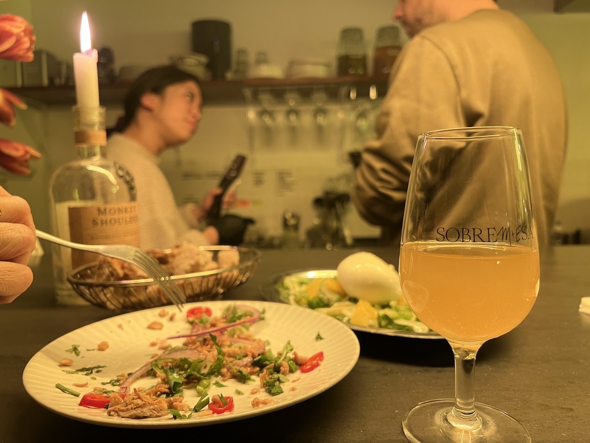 Il commence alors à faire des extras dans plusieurs restos montmartrois pour apprendre le métier et murir son projet. Ne restait plus qu’à trouver les financements. Après un foodtour de près de 4000 kilomètres à travers toute la France pour sourcer les produits, puis quelques mois de travaux, Sobremesa ouvre enfin ses portes en janvier 2024.