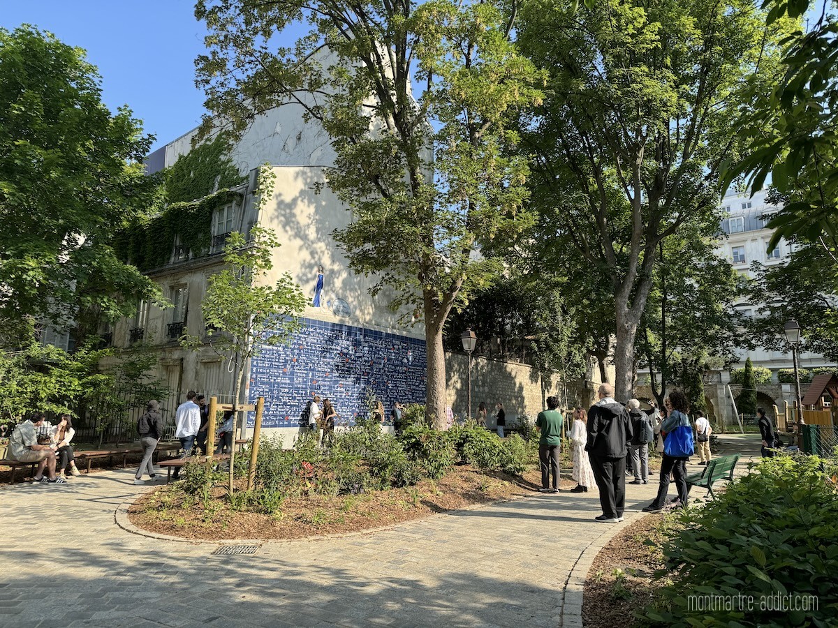 Jouissant d’une situation particulière, puisqu’il se trouve à quelques mètres de deux édifices classés au Patrimoine Historique de la Ville, à savoir l’Eglise des Abbesses et la bouche de métro Guimard, le Square Jehan Rictus constitue le seul îlot de fraîcheur au cœur des Abbesses. Nul doute que les montmartrois ne tarderont pas à se le réapproprier, tout en observant d’un oeil amusé toutes celles et ceux qui viendront se prendre en photo devant le Mur des Je t’Aime sans s’intéresser à notre beau jardin qu’on a bien envie de garder presque secret.