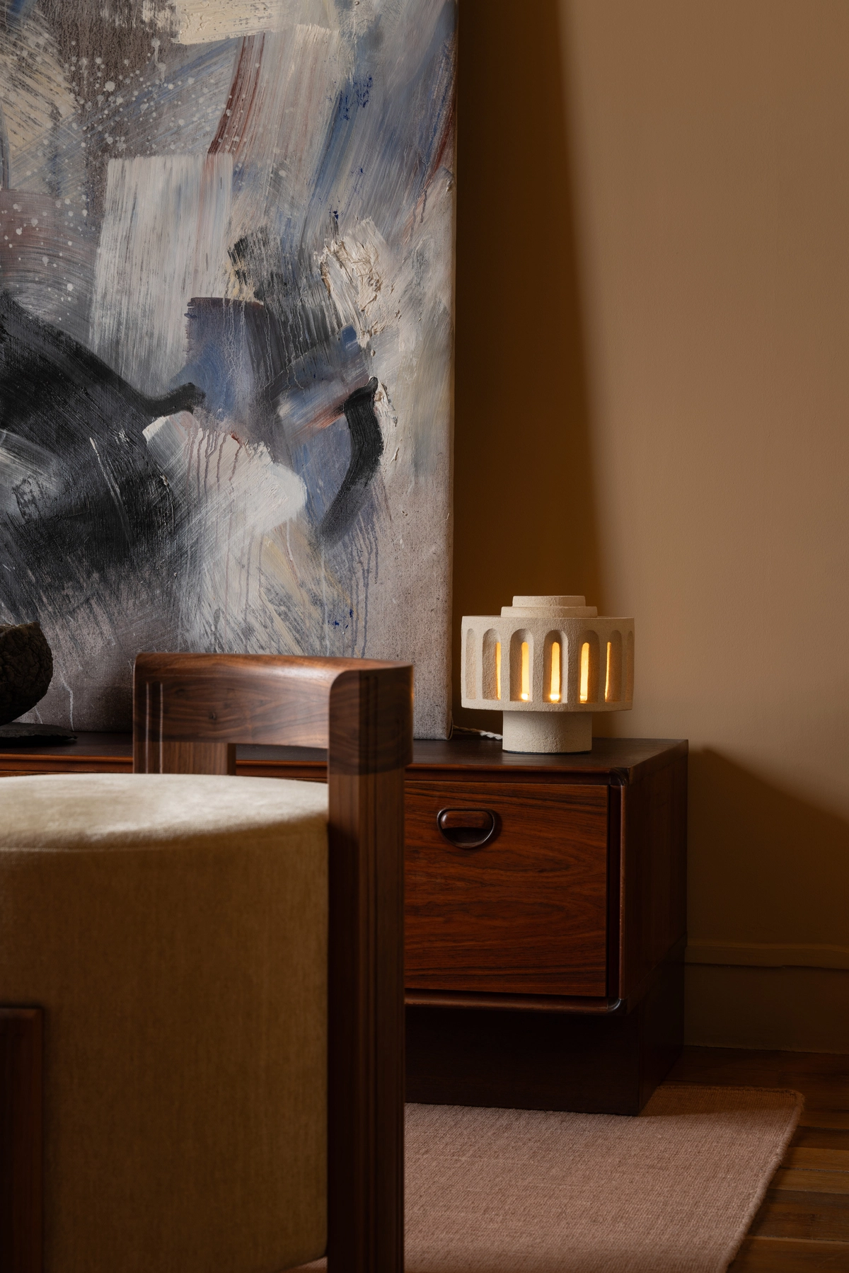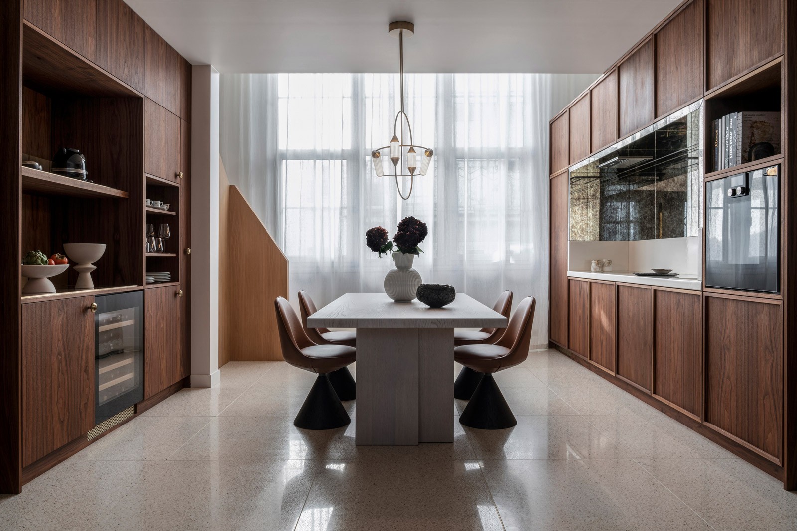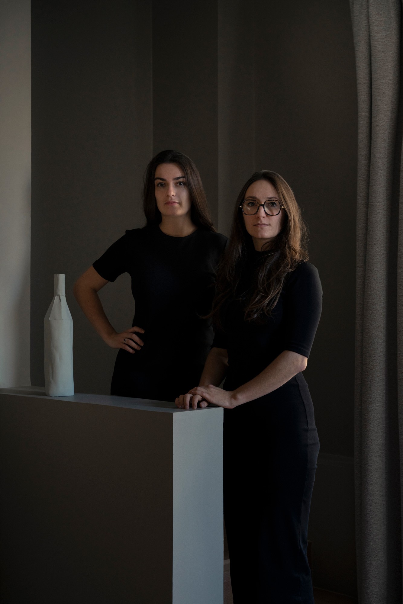 Ensuite, il y a leur métier. Parfaitement complémentaires, Marine, est l’architecte d’intérieur et la designer du duo, tandis que Constance est elle architecte HMONP. Cette double casquette leur permet d’aborder de multiples projets, depuis la simple rénovation d’appartement à la réalisation d’extensions ou de surélévations, ou encore la conception de boutiques ou de restaurants. Leur travail se distingue par une approche sensible à la matière, valorisant le bois, le tissu ou le métal forgé par exemple. Leur philosophie repose sur « l’éloge de l’ombre », préférant partir d’une boîte noire pour sculpter la lumière au fil des projets. Cette recherche de contrastes confère à leurs réalisations une ambiance feutrée, noble et apaisante, un univers qu’elles aiment qualifier de “sourd”. Pour autant, pas question d’imposer leur style au client. Leur proposition stylistique reste forte, mais leur souci du sur-mesure leur permet surtout d’adapter leur savoir-faire aux désirs de chacun.