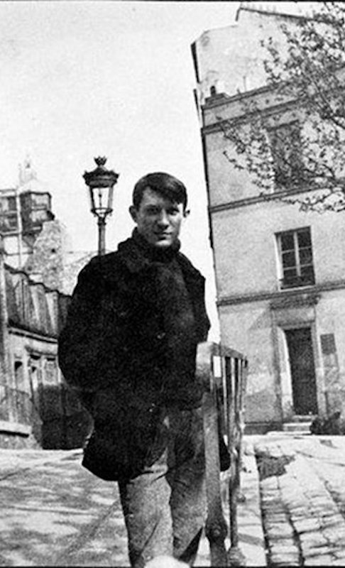 C’est en 1900, alors que le jeune peintre de 19 ans est à Paris pour participer à l’Exposition Universelle, qu’il découvre le quartier. A l’époque, il côtoie surtout ses compatriotes espagnols, en particulier Casagemas, Pallares et Nonell, chez qui il loge au 49 rue Gabrielle jusqu’à la fin de l’année. La joyeuse bande fréquente les nombreux lieux de plaisir du quartier, et prend du bon temps avec les jeunes femmes qui leur servent de modèle. C’est ainsi que Casagemas tombe éperdument amoureux d’une certaine Laure Germaine Gargallo, pour qui il se suicidera en février 1901 dans un café de la Place de Clichy. La jeune femme épousera plus tard Ramon Pichot, un autre peintre espagnol, avec qui elle rachètera La Maison Rose.