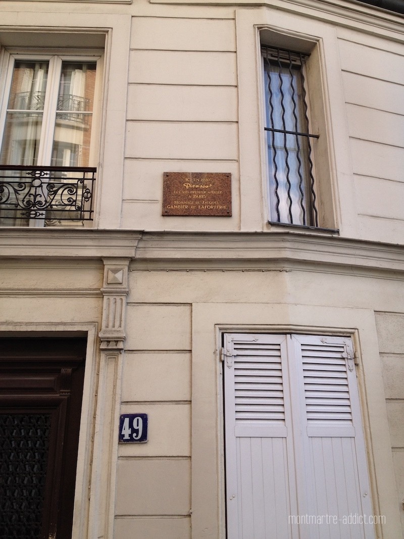 C’est en 1900, alors que le jeune peintre de 19 ans est à Paris pour participer à l’Exposition Universelle, qu’il découvre le quartier. A l’époque, il côtoie surtout ses compatriotes espagnols, en particulier Casagemas, Pallares et Nonell, chez qui il loge au 49 rue Gabrielle jusqu’à la fin de l’année. La joyeuse bande fréquente les nombreux lieux de plaisir du quartier, et prend du bon temps avec les jeunes femmes qui leur servent de modèle. C’est ainsi que Casagemas tombe éperdument amoureux d’une certaine Laure Germaine Gargallo, pour qui il se suicidera en février 1901 dans un café de la Place de Clichy. La jeune femme épousera plus tard Ramon Pichot, un autre peintre espagnol, avec qui elle rachètera La Maison Rose.