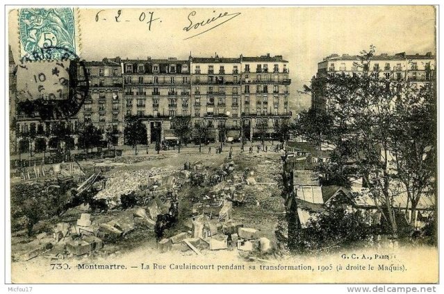 En 1897, la famille quitte la Butte pour s’installer rue de la Rochefoucauld, avant de revenir emménager au 43 rue Caulaincourt. Auguste loue alors un atelier au N°73, une belle pièce de plain-pied avec un petit jardin (…). Le dessinateur Steinlen et le peintre Fauché habitaient l’un au sous-sol, l’autre au premier de cet immeuble aux poutrelles apparentes, construit dans le style vieille Angleterre. Les Renoir y seront témoins de l’incendie du Maquis, avant de quitter Paris pour Cagnes-sur-Mer en 1903. La rue Caulaincourt sera ainsi l’une de leur dernière adresse à Paris.