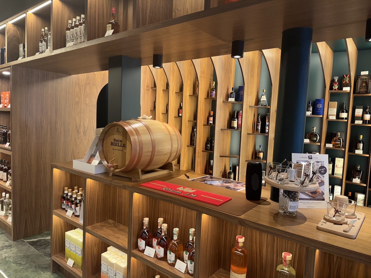 L’espace lui-même vaut le détour. Bernard avait une vision précise : une coque de bateau renversée pour rappeler l’époque des flibustiers, et un sol en marbre bleu comme la mer. Le résultat ? Une immersion sensorielle et visuelle, un décor qui prolonge l’expérience de dégustation, un écrin pour mettre en valeur le meilleur des rhums agricoles.