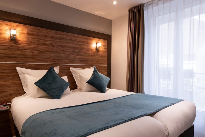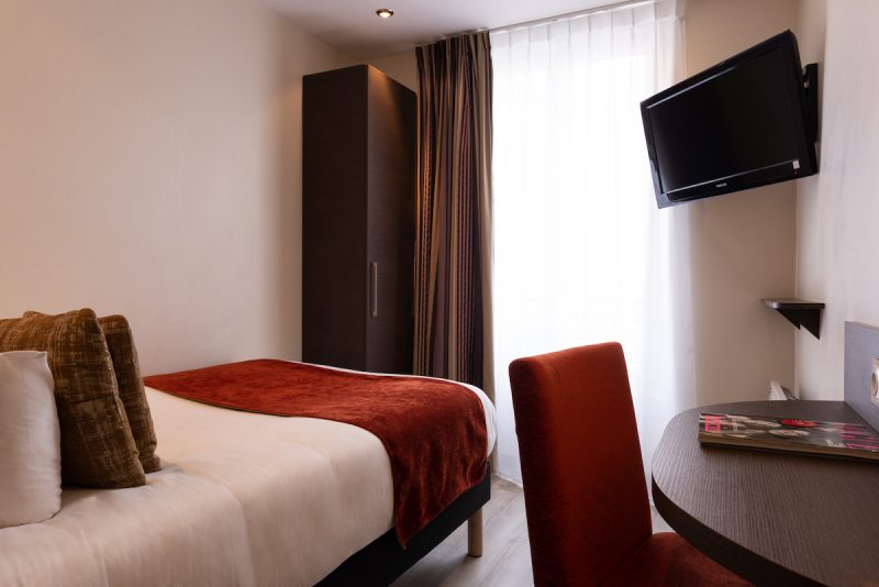 Disposant de 67 chambres réparties en trois catégories (single, classique et supérieure), elles offrent toutes un confort optimal (avec un soin tout particulier apporté à la literie) pour un rapport qualité/prix imbattable à partir de 79€ la nuit. Un business corner est à la disposition de la clientèle 24h/24, et une petite cour avec quelques tables permet aussi de profiter de l’extérieur dès que la météo le permet.