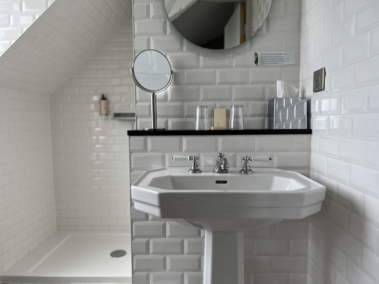 Chaque chambre est personnalisée, et le petit cabinet de curiosités composé de photos ainsi que le livre de Marcel Aymé sur la table de chevet accentuent le côté intimiste du lieu. Passer une nuit au Marcel Aymé, c’est un peu comme passer une nuit CHEZ Marcel Aymé, et pour avoir eu la chance de vivre cette expérience, on vous confirme qu’en plus on y dort très bien ! Tout est parfait, depuis l’accueil jusqu’au petit-déjeuner en passant par les boudoirs de lecture aménagés dans les couloirs et même l’ascenseur, où l’on ne résiste pas à la tentation du selfie avec Bourvil et Jean Gabin ! Très instagrammables aussi, la statue du Passe Muraille dans l’escalier et le buste de la jument verte sur un pilier dans la salle du bas.