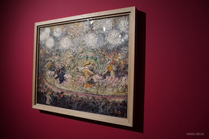 L’exposition est fascinante à plusieurs égards : d’abord parce qu’elle donne à voir de nombreuses scènes de Montmartre, mais également plusieurs tableaux inédits retrouvés grâce aux recherches effectuées pour les besoins de l’exposition, et donc jamais exposées ou sous un autre titre ou dans un autre cadre. Ensuite, bien que l’espace d’exposition soit relativement exigu, la scénographie permet d’admirer les œuvres indépendamment les unes des autres, ce qui donne à chaque tableau encore plus de force et de profondeur.