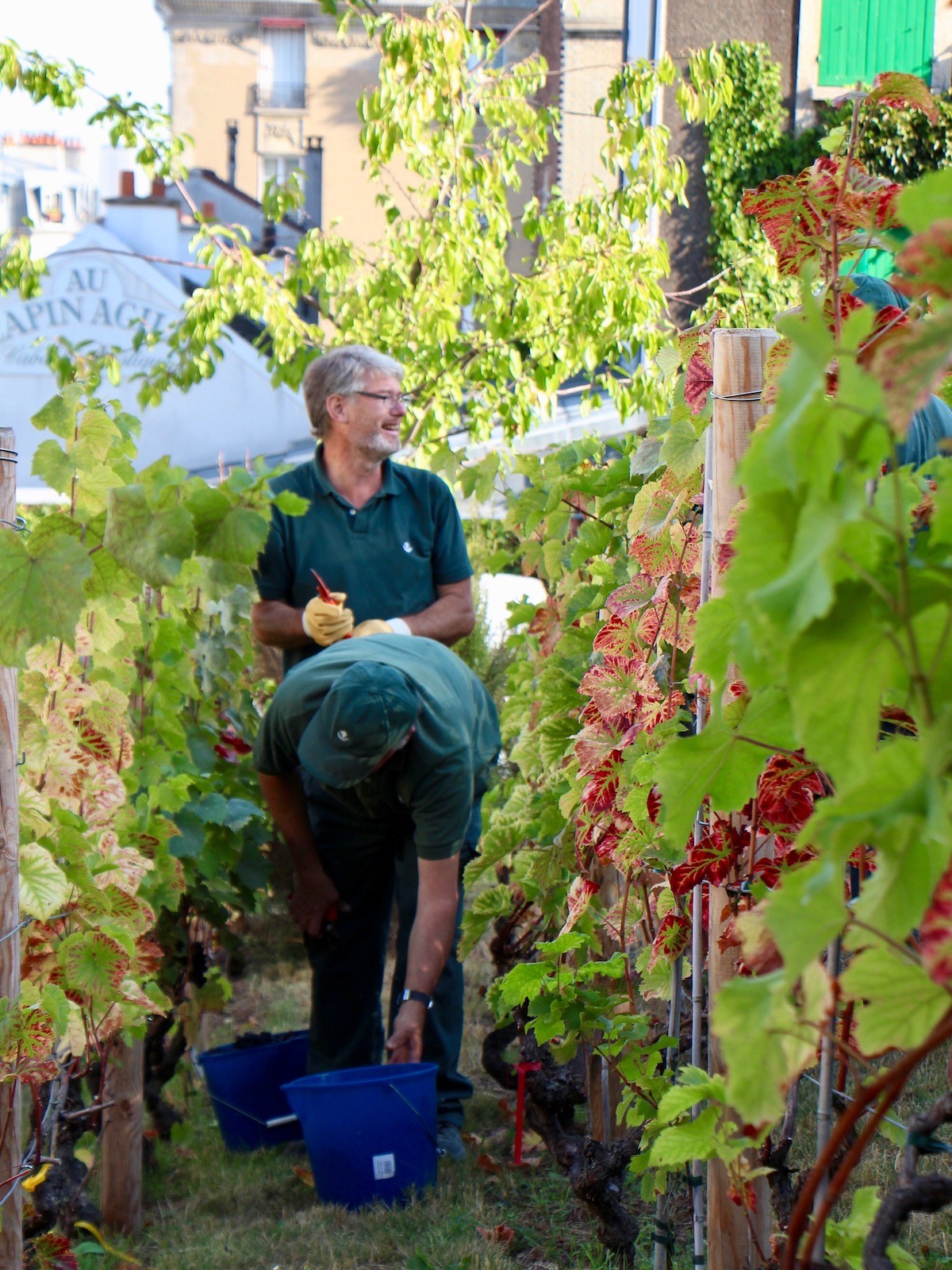 On constate cette année que le raisin est très mur et dans un bel état, grâce aux conditions climatiques exceptionnelles de cet été, et malgré l’orage de grêle qui s’est abattu sur le 18e arrondissement le 27 juillet dernier. Il faut dire que Vincent (ça ne s’invente pas !), le vigneron en charge du Clos Montmartre, travaille beaucoup pour compenser le manque d’exposition au soleil de la vigne, notamment par la taille des feuilles, ce qui permet d’augmenter la maturité et la saveur du raisin. Le réchauffement climatique permet également d’améliorer progressivement la qualité du vin de Montmartre, un vin qui reste, pour Sylviane Leplâtre, œnologue de la Ville de Paris, incomparable.