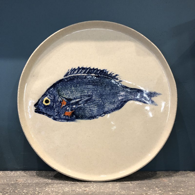 ✨ Les assiettes en céramique de Vincent Lévy et leurs empreintes de poisson inspirées du Gyotaku, une méthode japonaise de pêche ancestrale.