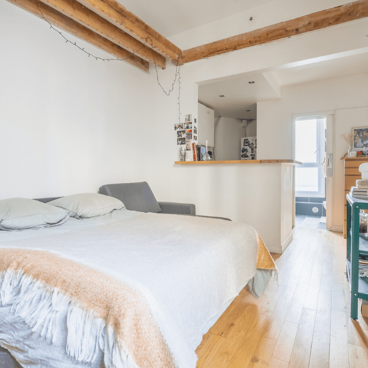 Idéalement situé dans une charmante rue Montmartroise, dans une copropriété refaite à neuf en 2019, beau studio de 24m² au calme absolu.