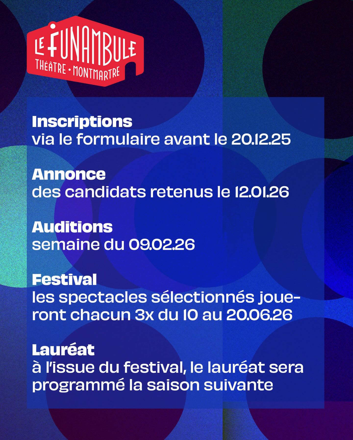 À l’issue de ces 10 jours de festival, un spectacle « lauréat » sera choisi par l’équipe du Funambule Montmartre.