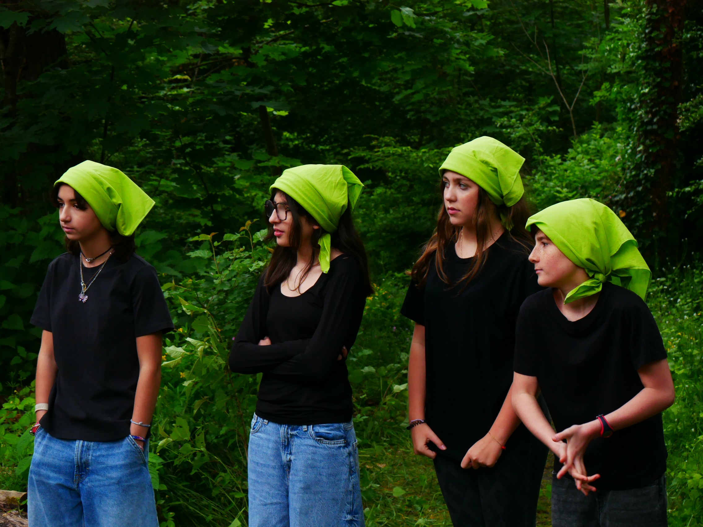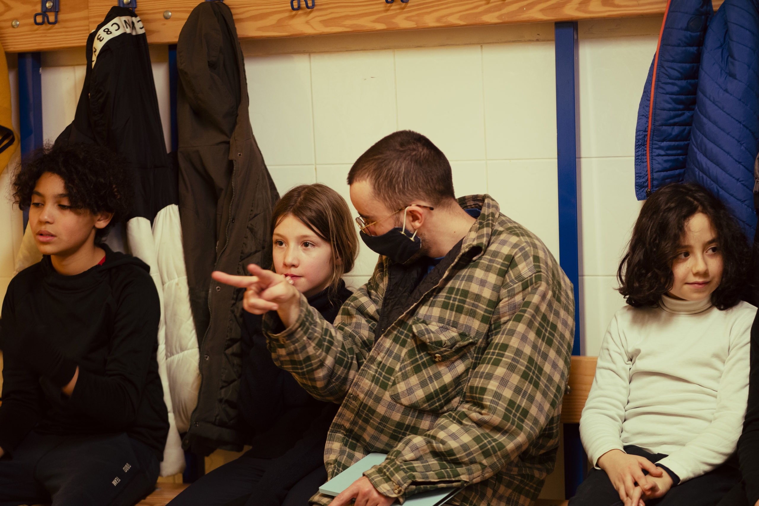 - Exercices de théâtre : travail d’écoute, d’imagination, de création de personnage.