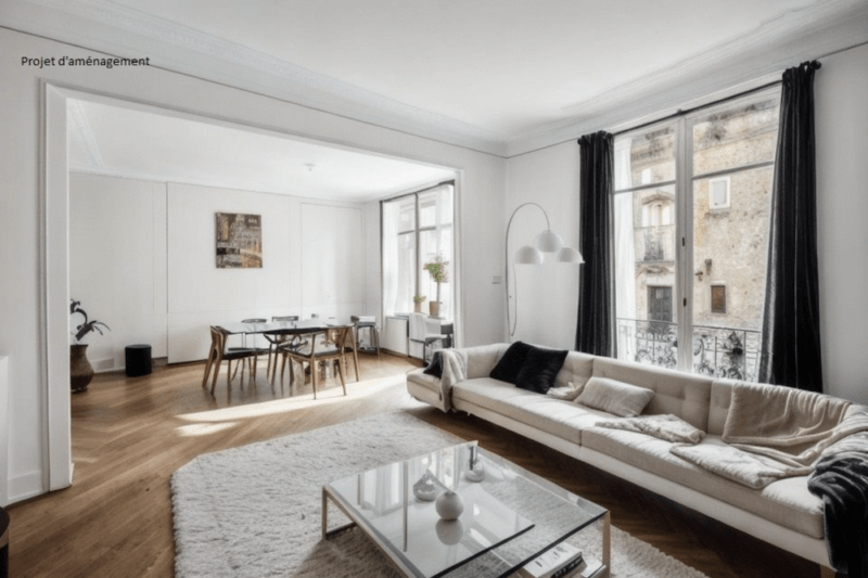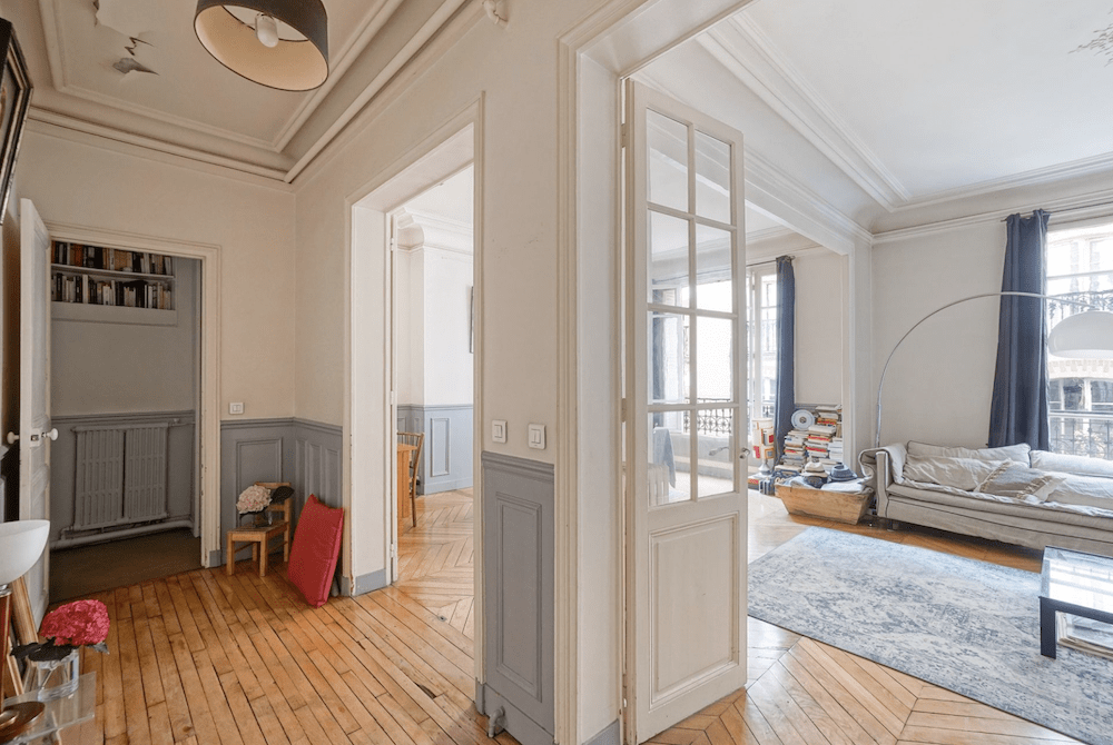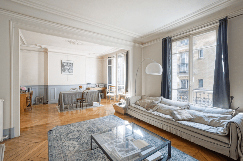 Situé à deux pas de la place des Abbesses et de la Place Pigalle, dans un immeuble datant de 1890, cet appartement de 91m2 est au deuxième étage, par ascenseur.