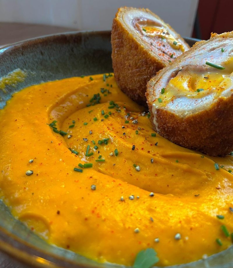 Le banger du moment ? Ce cordon bleu, cheddar, speck accompagné de sa mousseline de courges au grano padano. Un régal !