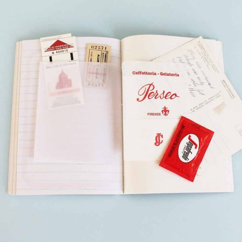 une alternance de pages avec différents papiers et trames, des petites enveloppes pour accueillir toutes les trouvailles lors d'un voyage…