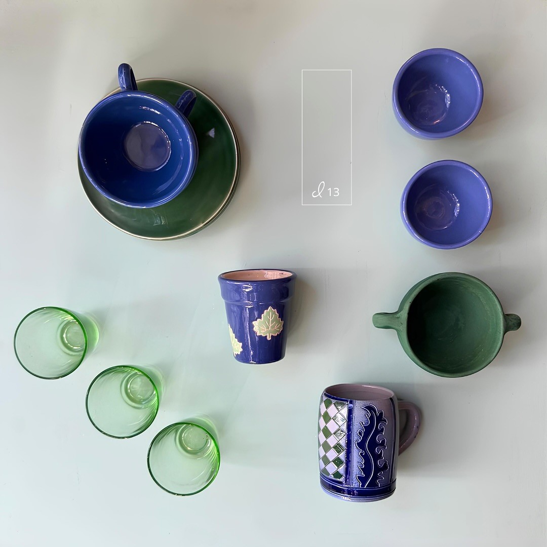 Joyeux mix d’objets chinés se concertant sur l’esthétisme de l’association bleu/vert, dont nous avons déjà parlé 💚💙