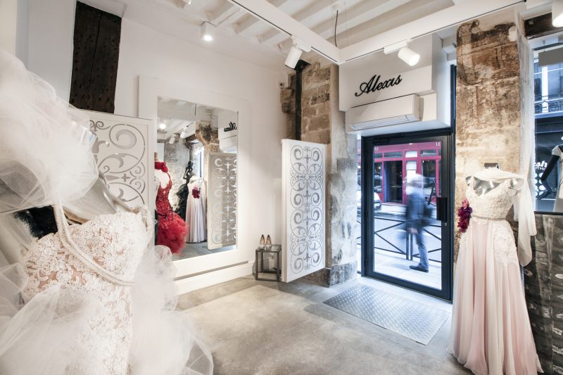 Alexis, créateur de robes de soirée de prestige, souhaitait apporter un maximum de lumière naturelle dans sa boutique afin de mettre en valeur ses créations, en jouant notamment sur les paillettes et la dentelle.