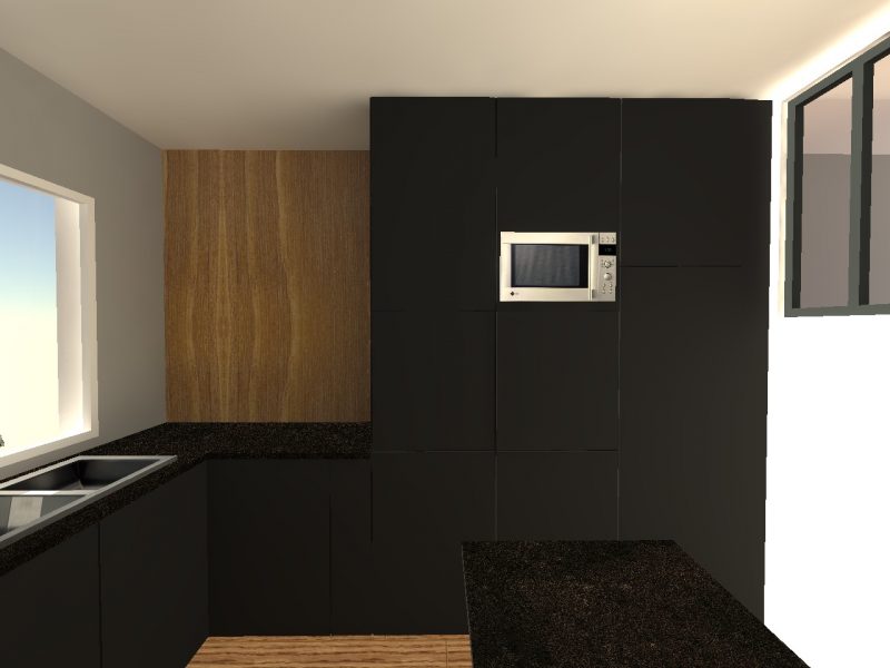 Il est entièrement rénové, les propriétaires souhaitent une cuisine monochrome, noire.