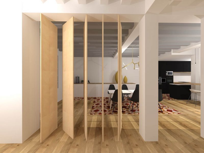 La cuisine placée dans l’extension, viendra s’insérer dans la salle à manger par quelques astuces…